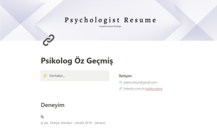 Öz geçmiş hazırlamak yaratıcılık ve sadelik ister. Notion'da kullanabileceğiniz bu öz geçmiş şablonu ile yalnızca boşlukları doldurarak ve dilediğiniz noktaları ekleyerek bir öz geçmiş bağlantısı oluşturabilirsiniz. Başvurduğunuz işlere direkt bu öz geçmiş linkini atarak onların erişimine sunabilirsiniz. Bu şablonu kullanmak için ihtiyacınız olan tek şey Notion hesabı açmanız. Şu adımları takip ederek hesap oluşturup şablonu kullanmaya başlayın: 1. Notion'a giriş yapın. 2. Notion hesabı oluşturun. 3. Notion Psikolog Öz Geçmiş Template'i satın aldıktan sonra PDF içindeki linke tıklayın. 4. PDF'in yönlendirdiği bağlantı üzerinden şablona erişin. 5. "Duplicate" seçeneğini kullanarak şablonu kendi Notion ana sayfanıza ekleyin. 6. Dilediğiniz gibi kullanın ve paylaşmaya başlayın.